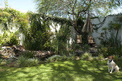 The finish plaster is lime-based, not cement, made to traditional recipes. We even boiled cactus for binder and added natural color pigments.